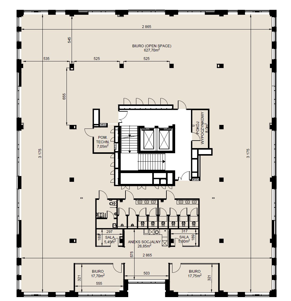 • Całkowita powierzchnia biurowa